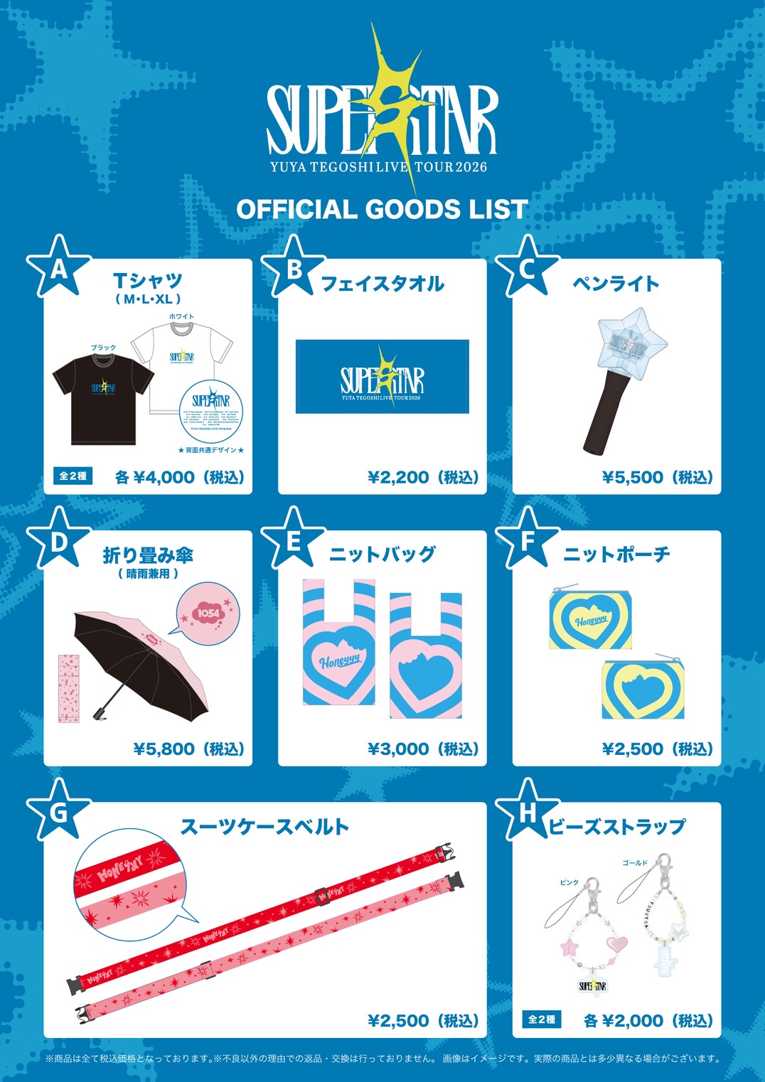 「手越祐也 LIVE TOUR 2026 SUPER STAR」グッズ情報解禁・販売開始のお知らせ!